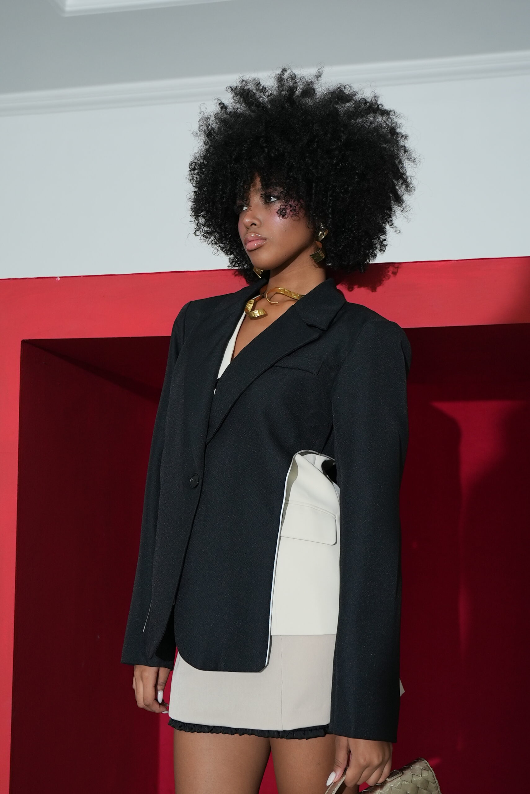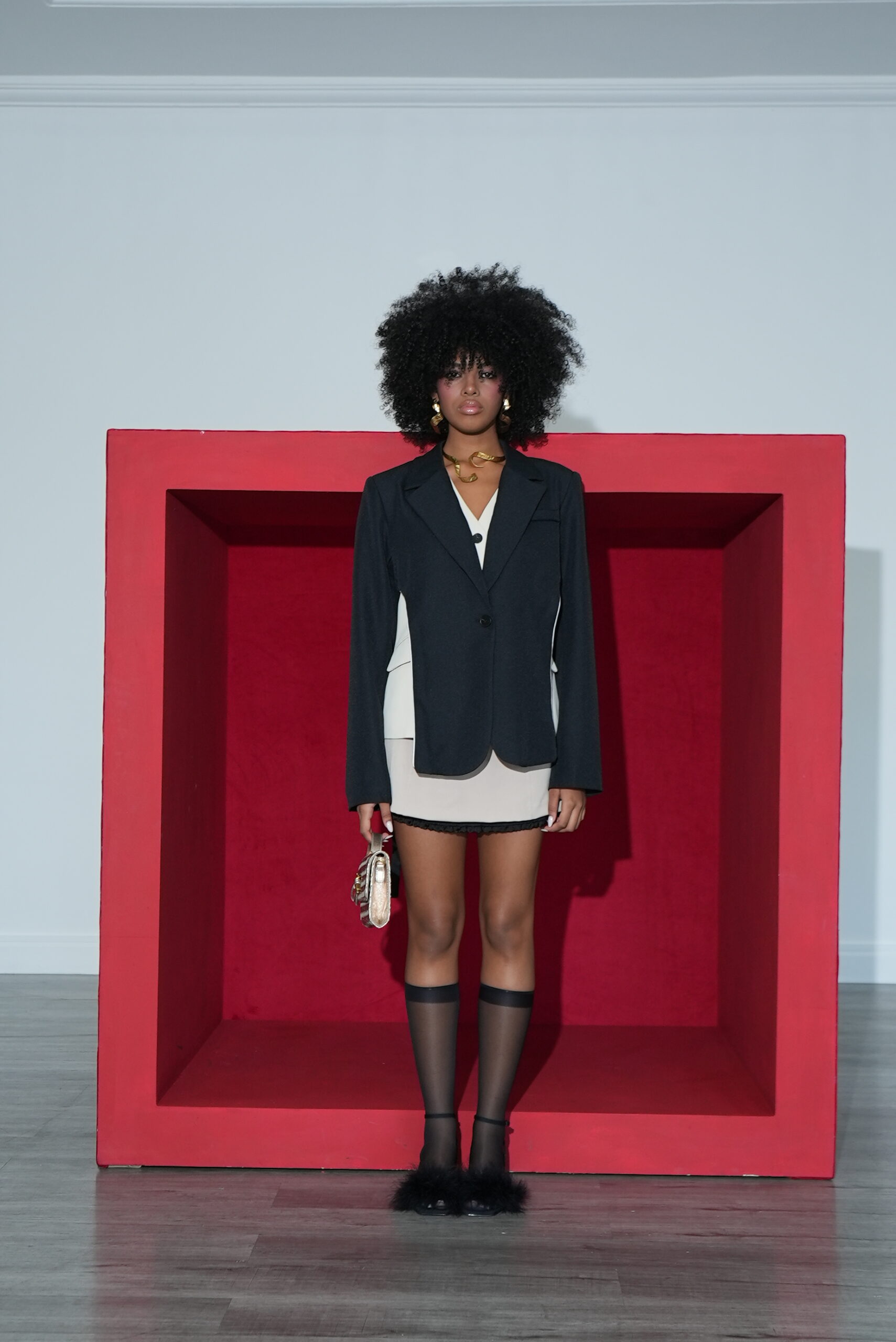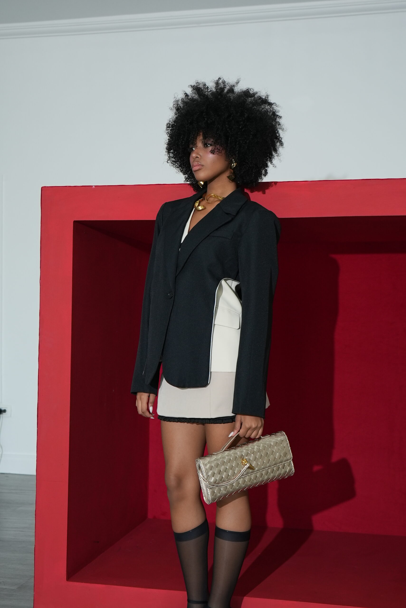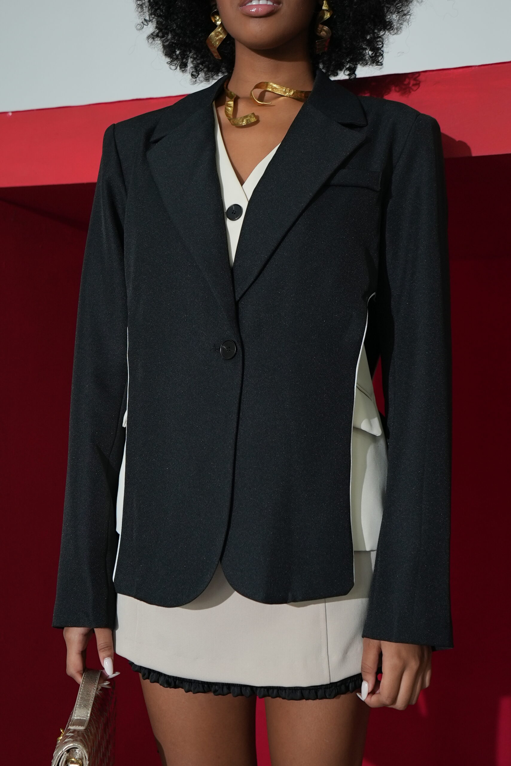 FALDA BEIGE ENGOMADA DETALLE Y CHALECO COLOR NEGRO